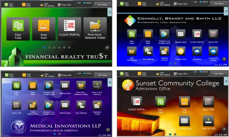 Sharp’s award-winning, customizable touchscreen display features a clean design and enables easy access to features and functions when setting up jobs. The easy-to-use touchscreen display is common across 30+ models in the lineup.